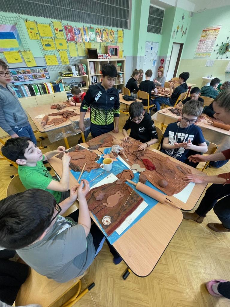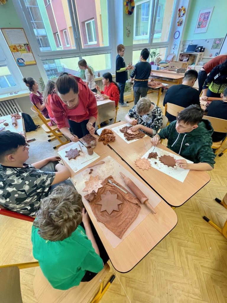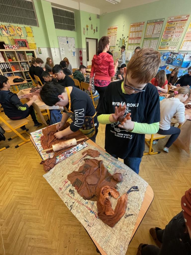 V 5.C ve spolupráci s žáky 7.B a 9.B probíhaly přípravy na velikonoční jarmark.