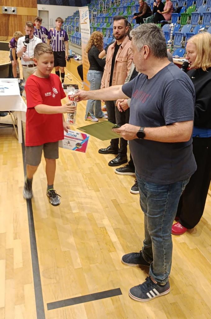 Při vyhlašování náš kapitán převzal diplom, sadu florbalových míčků a malou sladkou odměnu v podobě lízátek, které předával sám primátor města Mostu Ing. Marek Hrvol.