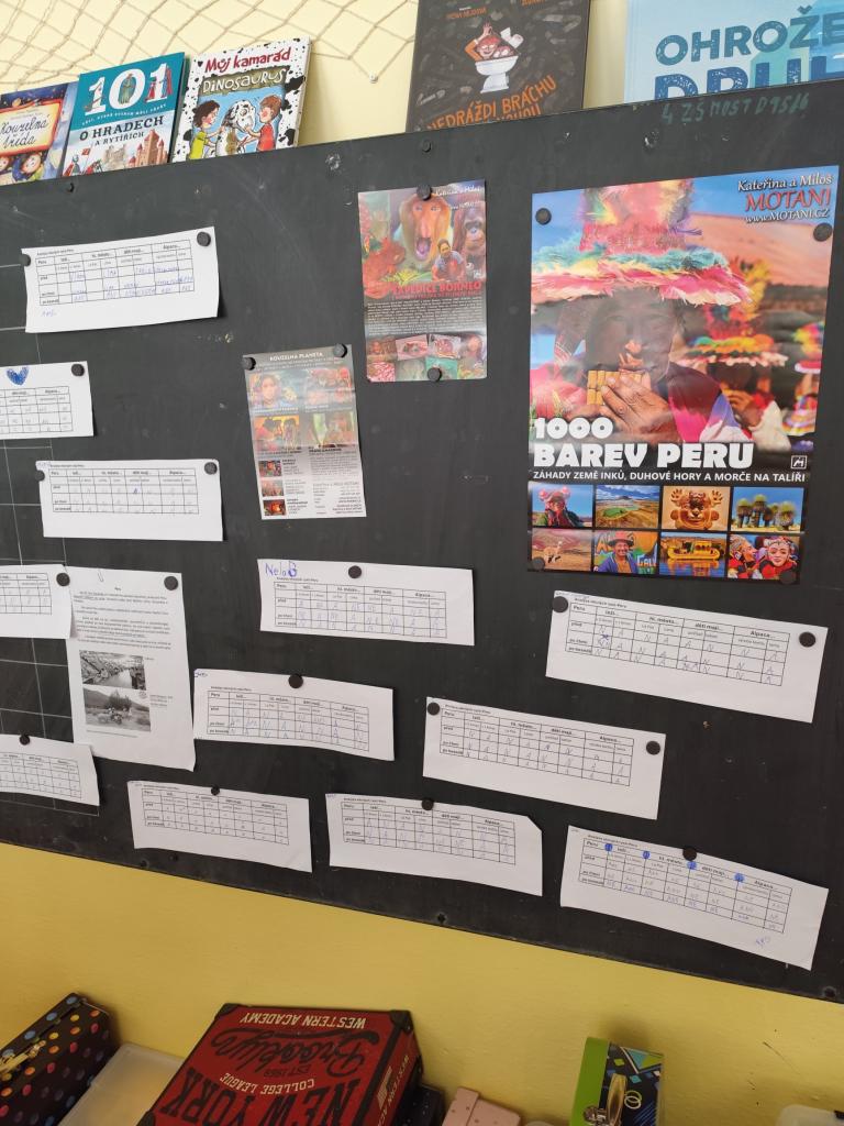 Žáci 4. A se zúčastnili besedy 1000 barev Peru v Městské knihovně. Dozvěděli se spoustu zajímavostí o této zemi a shlédli krátký sestřih z cest manželů Kateřiny a Miloše Motani. Ve škole si tuto zemi ukázali na mapě a přečetli si krátký text o životě v Peru. Zkoušeli vyplnit tabulku: Analýza věcných rysů-další z metod kritického myšlení.Práce s textem se jim dařila a beseda je zaujala.
