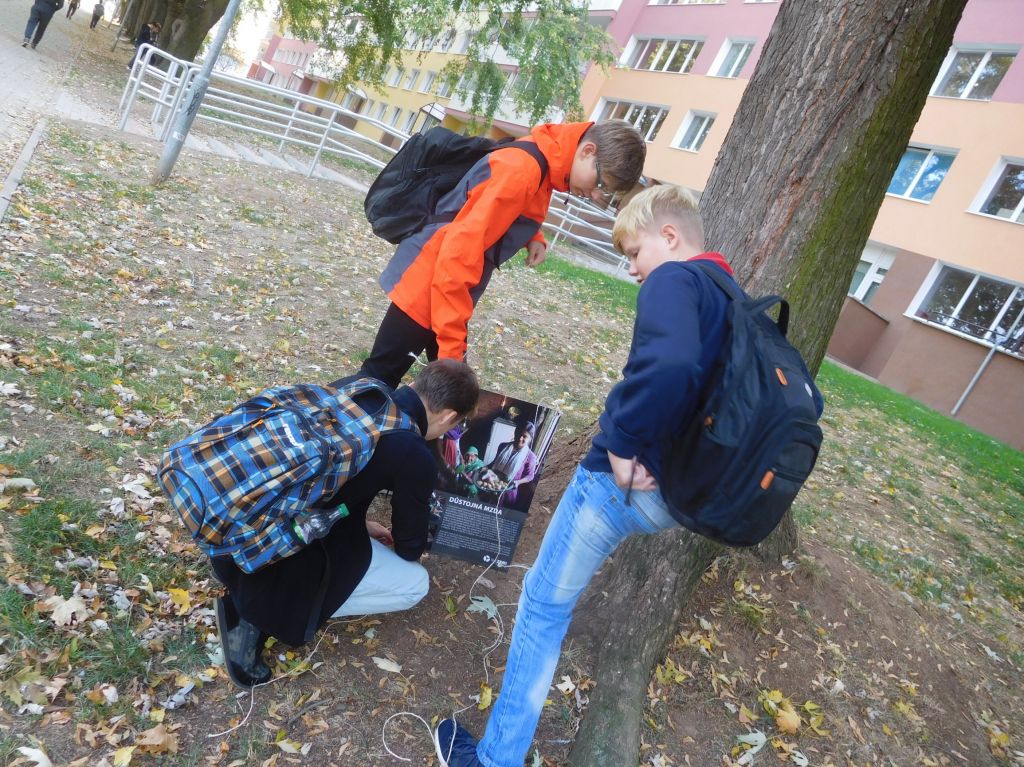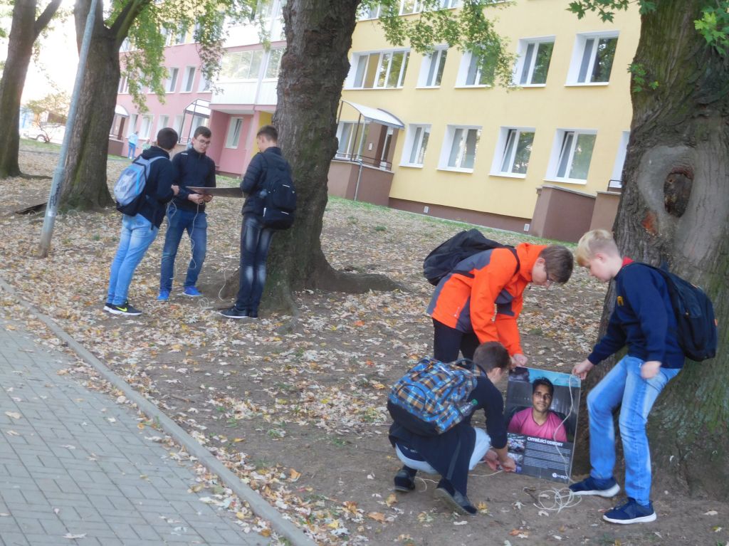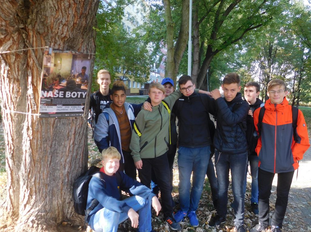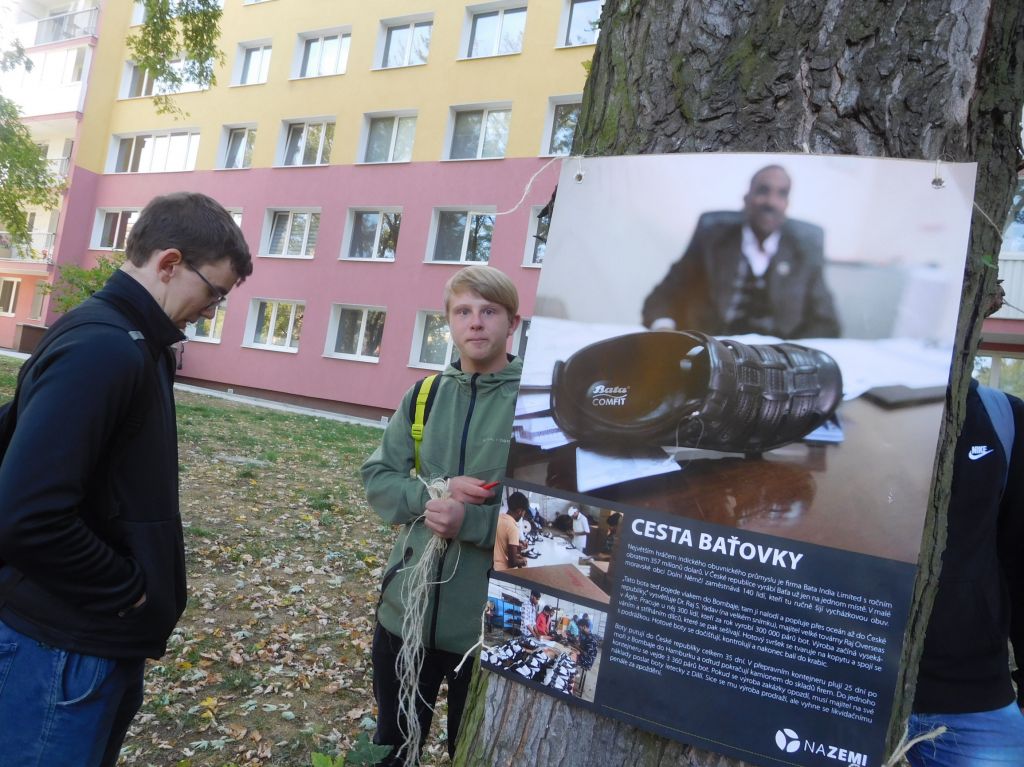 Během říjnového "Týdne důstojné práce" se park v ulici Jana Kubelíka proměnil v plakátovou výstavu. Ta ukazuje na pracovní podmínky při výrobě bot v indické Agře. Indie je po Číně druhý největší výrobce obuvi na světě. V roce 2016 tam například vyrobili celkem 2,26 miliardy párů bot. Výstavu během týdne shlédli organizátoři výstavy - žáci a žákyně Základní školy Václava Talicha v Mostě ale také stovky, třeba i náhodných, kolemjdoucích. Každý plakát je doplněn také příběhem, který dává návštěvníkům možnost udělat si vlastní obrázek o tamních pracovních podmínkách. Výstava na stromech je celorepublikový happening na podporu odpovědné spotřeby a konal se na celkem na 70-ti místech v České republice Výstavu jsme spoluorganizovali ( připravili a nainstalovali kluci z 9.A) s organizací NaZemi a autentické fotografie pořídil Stanislav Komínek.