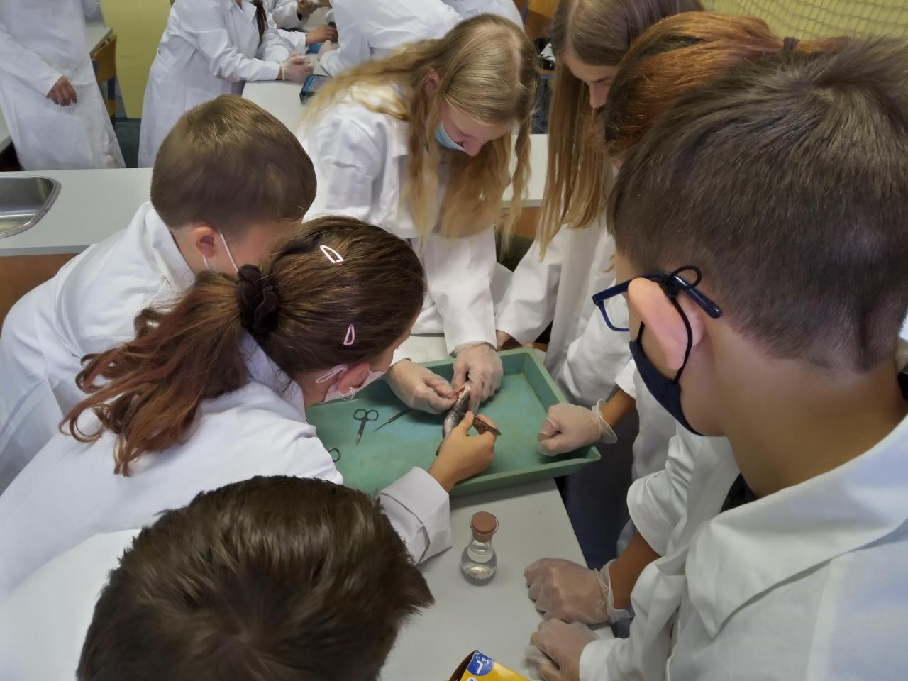 Na naší škole se v probírané látce opravdu pitváme, a proto si třída 7.A vyzkoušela dne 5.11.2021 pitvu naživo. Oběťmi našich žáků se stali sumečci američtí. Tento druh je v našich vodách nepůvodní a rybáři se ho snaží z rybníků zbavovat. Proto nemusíme nad jejich ztrátou příliš truchlit. Při pitvě si žáci mohli prohlédnout stavbu vnitřních orgánů, které slouží k rozmnožování, trávení nebo rozvodu krve. Maruška S. jako profesionálka vyjmula mozek a uložila jej do sklenice s lihem. Tímto způsobem žáci odebrali několik dalších orgánů, které budou dlouho sloužit k výukovým účelům. Jak se jim práce dařila, můžete posoudit dle přiložených fotografií.