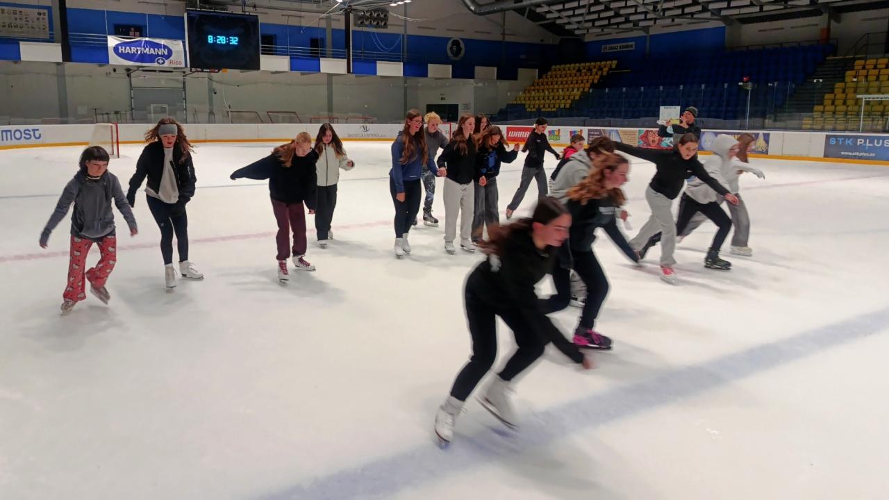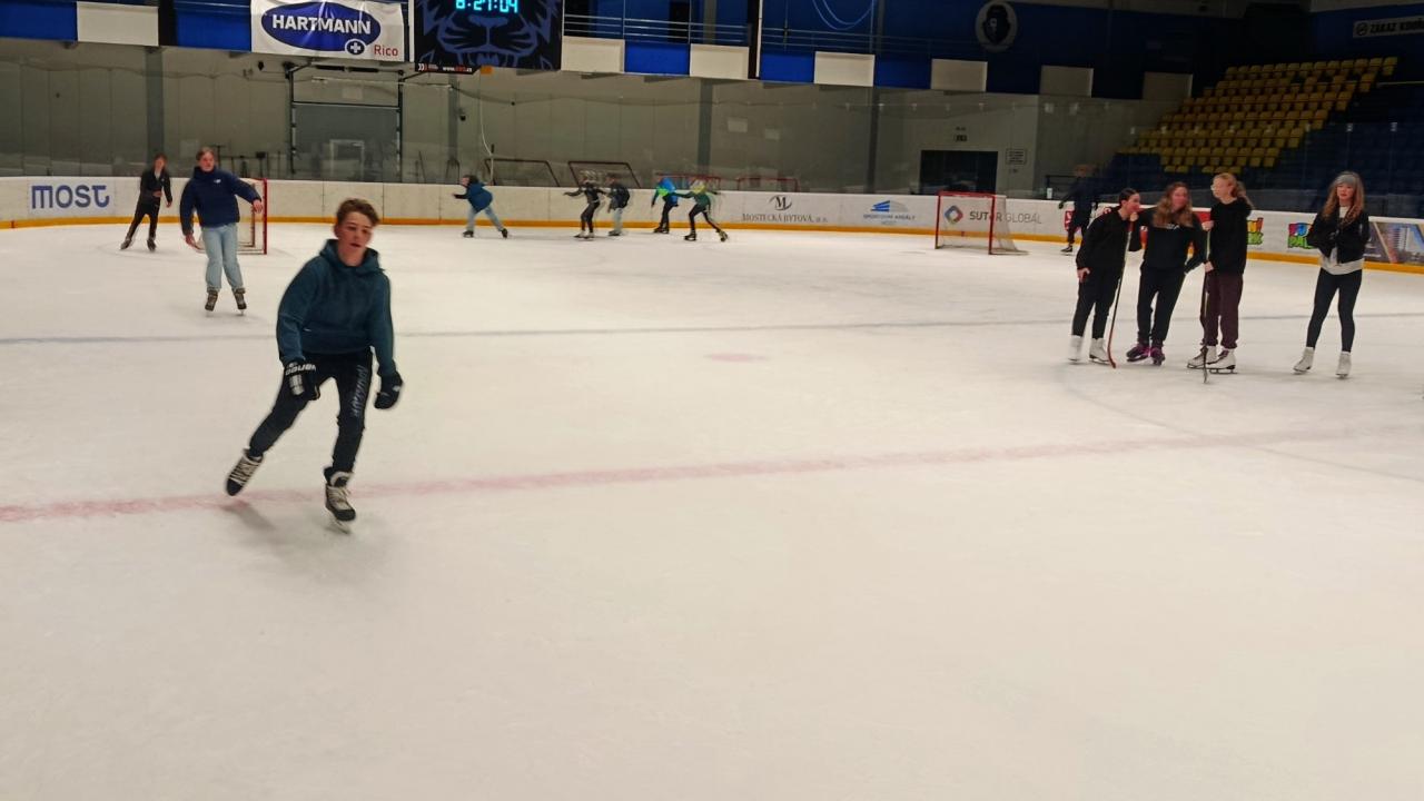 V pondělí 3. listopadu se žáci osmých tříd zúčastnili letošního prvního bruslení. V 8:00 jsme se sešli před školou a společně vyrazili na zimní stadion v Mostě. Led máme vždy od 8:45 do 9:45 a rádi toho využíváme již třetím rokem. Za tuto možnost velice děkujeme!!! Bruslení se zúčastnilo přibližně 35 žáků. Kromě volného bruslení si někteří žáci vyzkoušeli i hokej… tedy přesněji řečeno… práci s hokejkou a pukem. Na závěr jsme uspořádali tradiční krátký závod na jedno kolo - o vítěze až tak nejde :). Akce proběhla v příjemné atmosféře a žáci si sportovní dopoledne opravdu užili. Bruslení na zimním stadionu v Mostě bude pokračovat i v dalších termínech během listopadu, prosince a ledna. Nejedná se však pouze o aktivitu pro osmé ročníky – v průběhu zimních měsíců se na led postupně vydají i další bruslící třídy naší školy.