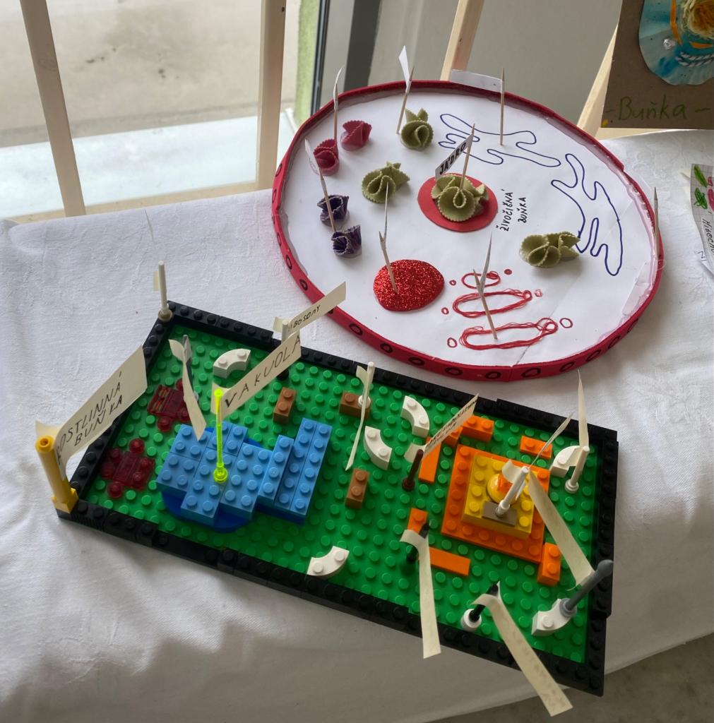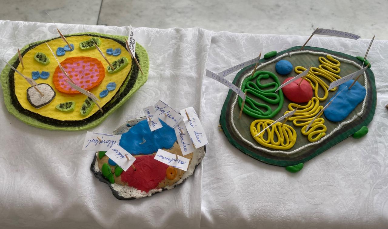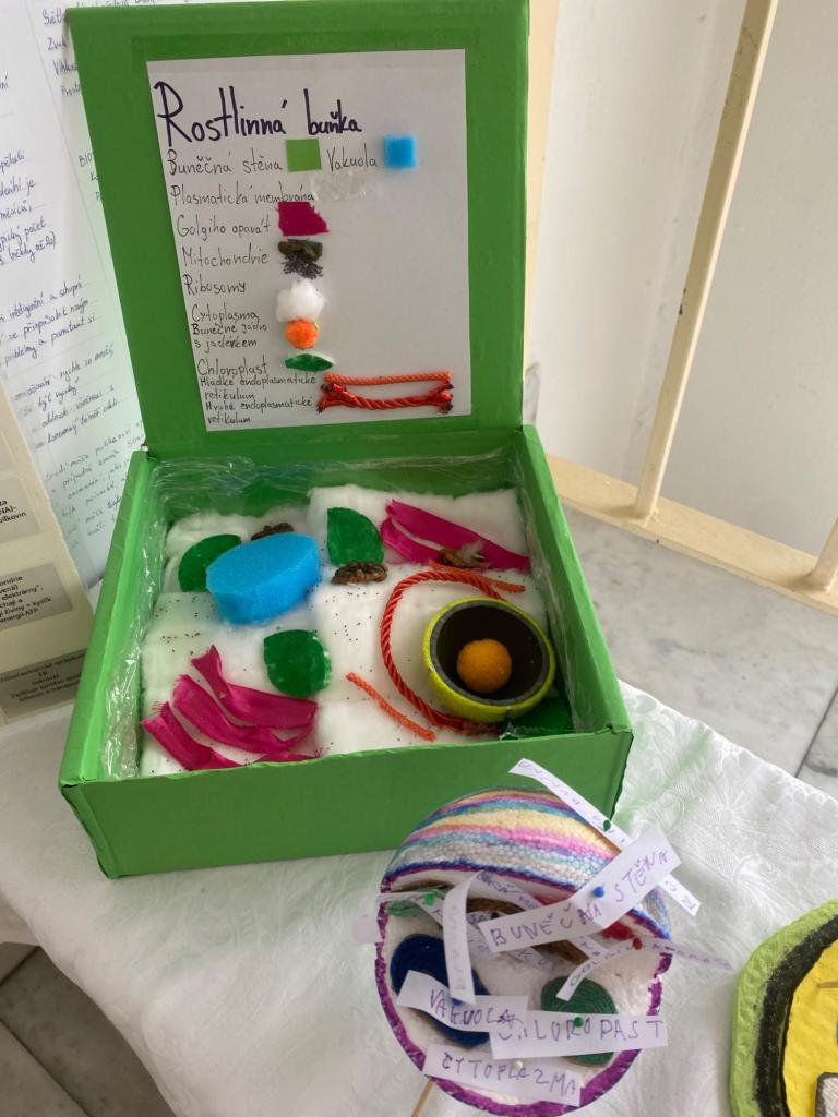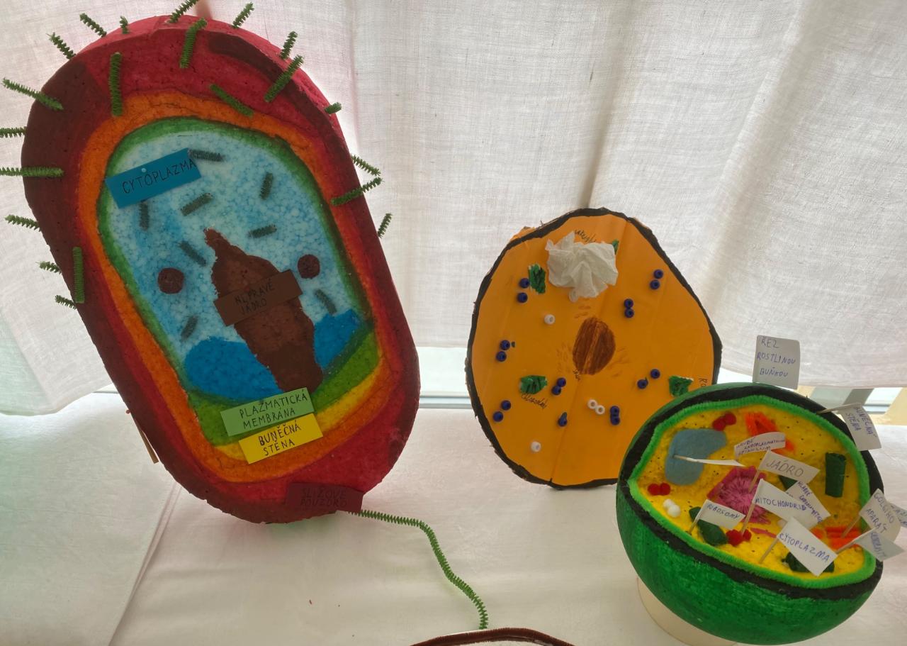 Vznikly originální modely rostlinných i živočišných buněk, na kterých byly pečlivě zpracovány jednotlivé buněčné organely. Při práci žáci využili nejrůznější materiály – objevila se modelína, lego, těstoviny, vlna, papír, korálky i další netradiční pomůcky. Každý model je jedinečný a odráží osobitý přístup svého autora.