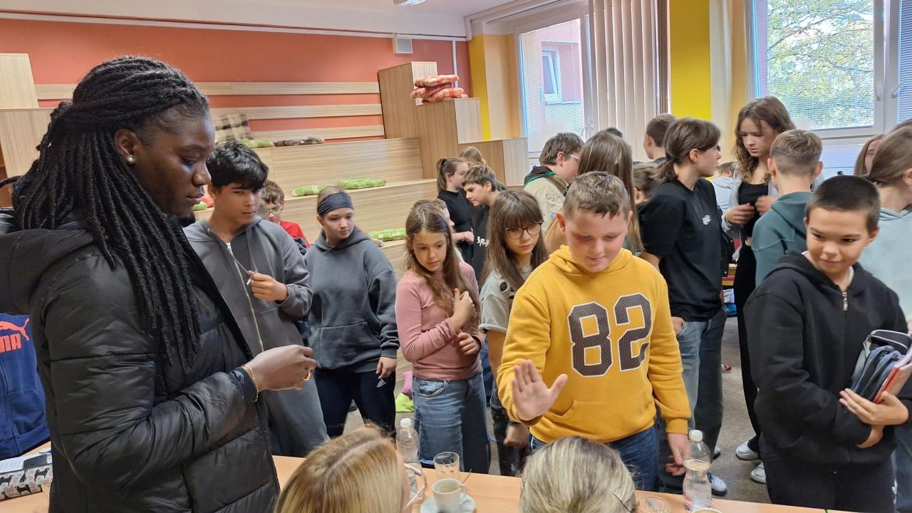 Jedinečnou možnost diskutovat s desetinásobnými mistryněmi České republiky v házené měli žáci šestých tříd na naší škole. Čtveřice házenkářek ve složení Karin Řezáčová (brankářka), Katarína Kostelná (spojka), Nora Caroline Nelly Fontaine (pivot), Rossana Sebastiao Mateus (spojka), které podpořil jejich trenér Joåo Floråncio byla pod palbou zajímavých otázek. V 60 minutách hráčky stačily prozradit, jak se k házené dostaly, jaká byla jejich cesta do Mostu, jak budou trávit Vánoce, co je v nejbližších týdnech čeká anebo také jakou hudbu v šatně před utkáním poslouchají. Nejvíce zaujala Rossana, která do Mostu přišla z Angoly. Čtyřiadvacetiletá spojka týmu se k házené dostala, až ve třinácti letech. Podařilo se jí probojovat do prvního afrického klubu C.D. Priomeiro de Agosto a s tímto klubem vyhrát i africkou Ligu mistryň. S jazykovou bariérou jí pomáhají spoluhráčky a trenér, který mluví anglicky a portugalsky. „Snažíme se být pro všechny hráčky, cizinky v týmu oporou, aby to měly jednodušší. Třeba i muziku se snažíme sladit v šatně, aby ladila nám všem, třeba píseň Bella Ciao je na společném žebříčku“, prozradila s úsměvem brankářka Karin Řezáčová. Trenér Florencio má za sebou též zajímavou cestu do mosteckého týmu. Trénoval po celém světě od Evropy, přes Asii, až Afriku, vedl i Nepálskou reprezentaci. Mimo jiné také působil v Angole, kde se Rossany všiml. I takové informace se žáci dozvěděli v debatě s úspěšnými házenkářkami. Více informací ze zajímavé diskuse se dozvíte v příštích dnech ve video sestřihu, který připravuje redakční tým.