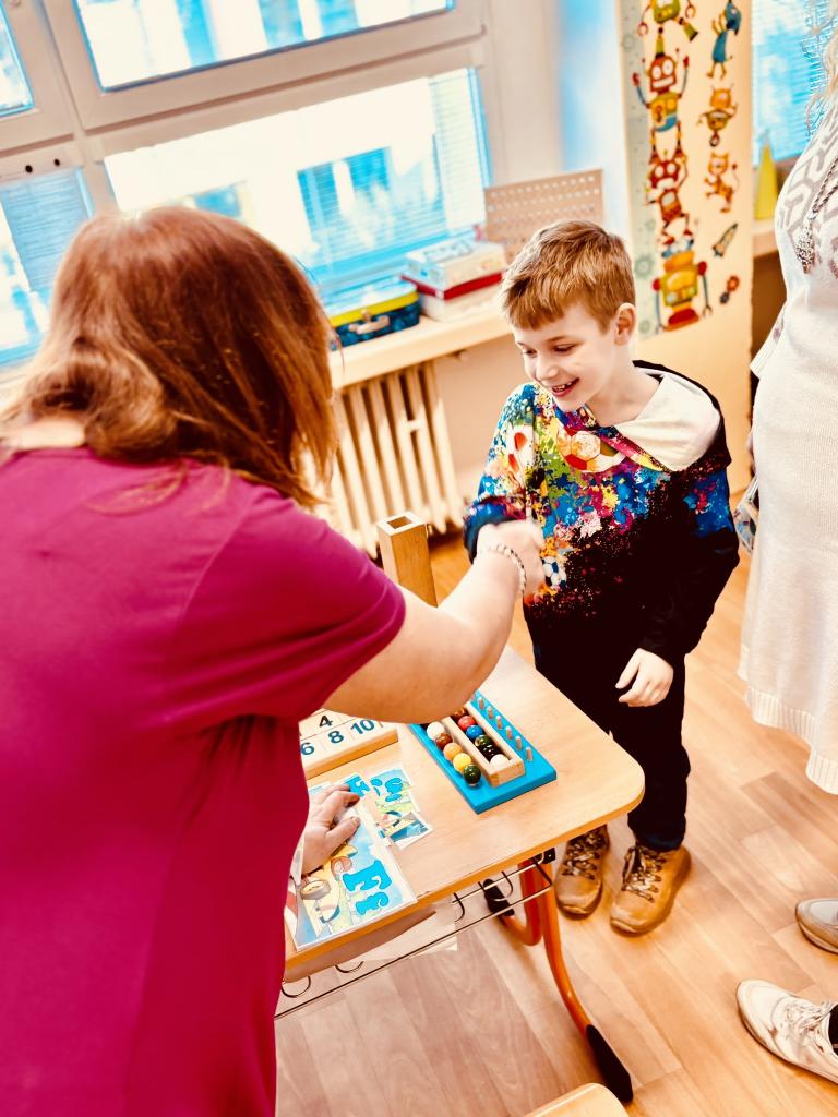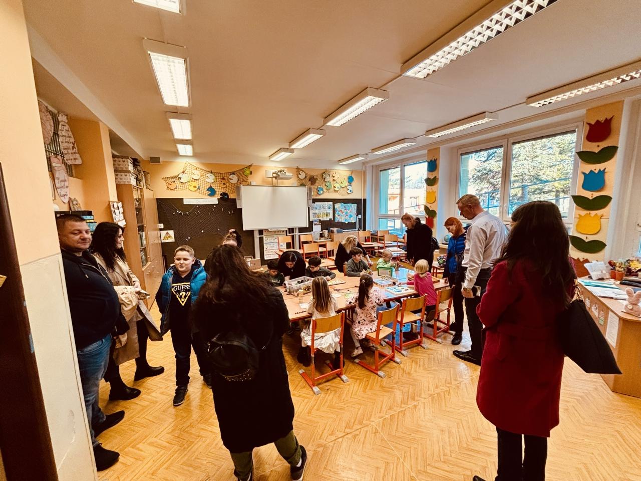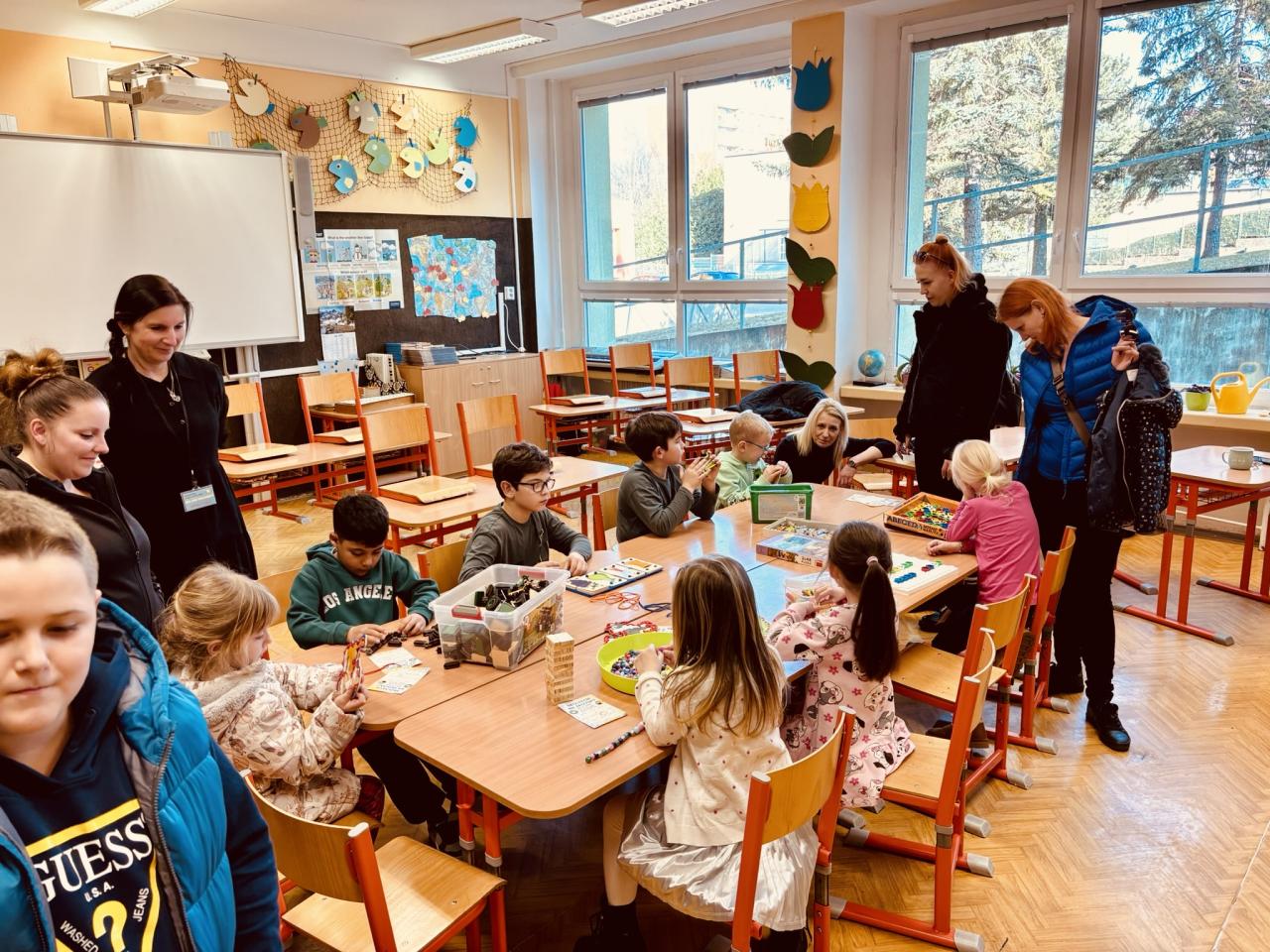 Návštěvníci měli jedinečnou příležitost prohlédnout si prostory školy, vybavení a práce našich žáků. Děti se mohly zapojit do různých aktivit na stanovištích, kde si vyzkoušely práci na interaktivní tabuli, zacvičily si v tělocvičně, prováděly fyzikální a chemické pokusy, hrály si s robotickými hračkami, animovaly v animačním studiu a procvičovaly angličtinu v počítačové učebně. Rodiče mezitím získávali informace v kavárně, která se nacházela ve cvičné školní kuchyňce. K vidění byly také čtenářské koutky, ukázka kroužku korejštiny a práce s i-hřištěm. Pro děti bylo připraveno malování na obličej a opékání buřtíků, což přispělo k příjemné atmosféře celé akce. Každé dítě, které ukázalo hrací kartičku s nasbíranými razítky, dostalo na krk medaili s logem školy a odneslo si spoustu nezapomenutelných zážitků. Den otevřených dveří byl skvělou příležitostí pro budoucí prvňáčky a jejich rodiče, aby se seznámili s atmosférou naší školy a zažili, jak to u nás "chodí". Těšíme se na další setkání a doufáme, že se s mnohými uvidíme u zápisu do 1. třídy ve dnech 3. a 4. dubna.