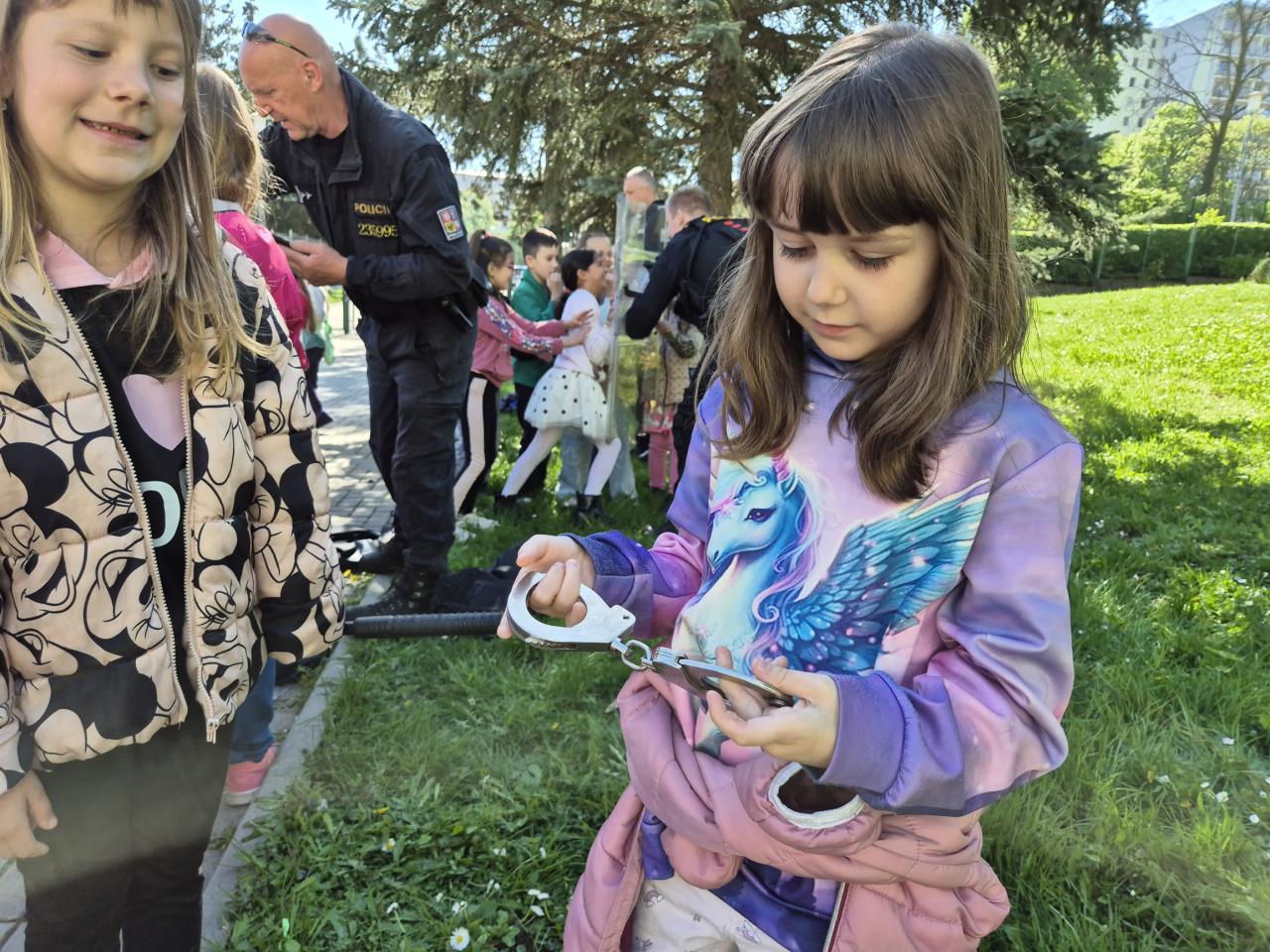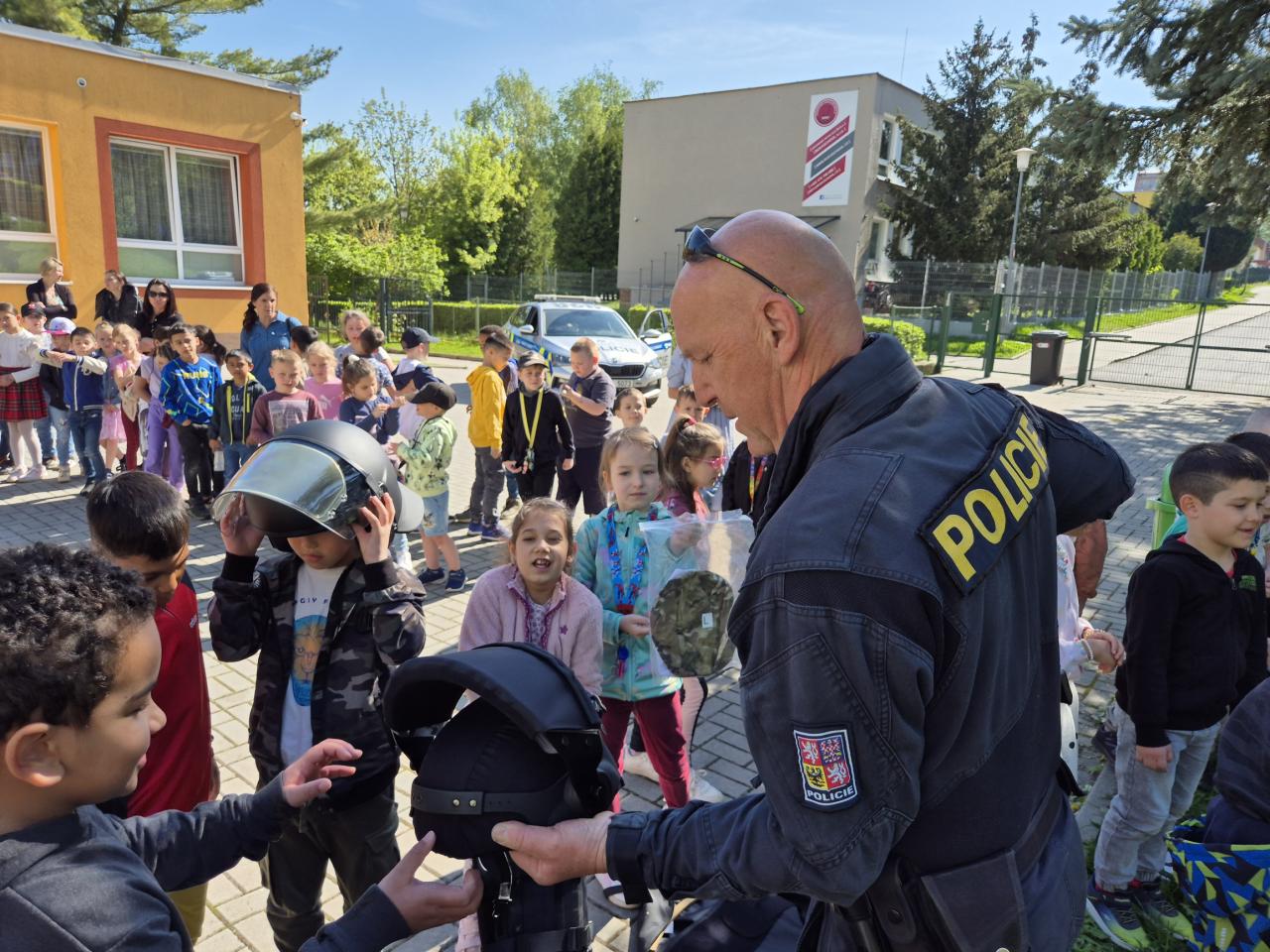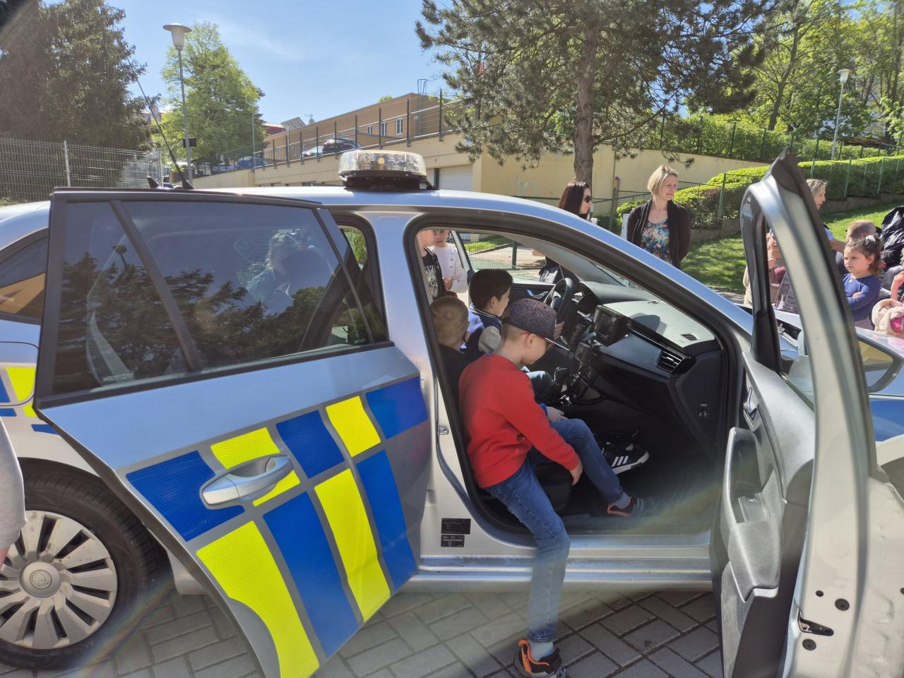 Velkým lákadlem byla také možnost prohlédnout si policejní vozy zevnitř. Žáci si mohli sednout na sedadla policejního auta, prozkoumat vybavení a za asistence policistů si vyzkoušet zapnutí sirén a světelných majáků, což se setkalo s velkým nadšením.