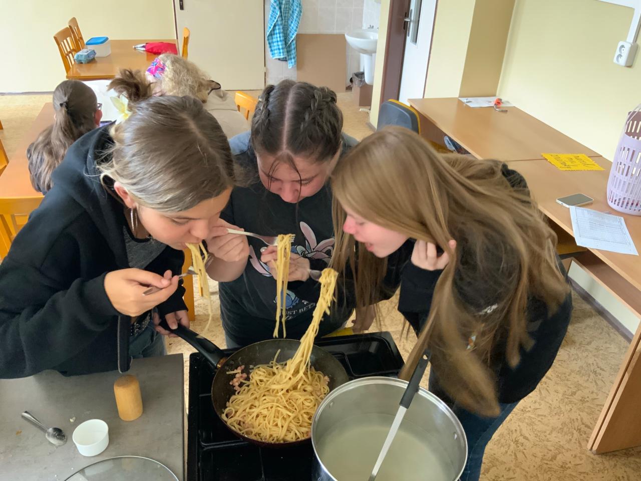 Děvčata si vyzkoušela nejen různé tvary a druhy těstovin, ale i různé techniky přípravy. Od tradiční rajčatové omáčky, přes smetanovou variantu, až po lehký salátek– každá skupina přišla s vlastním nápadem a přidala špetku kreativity.