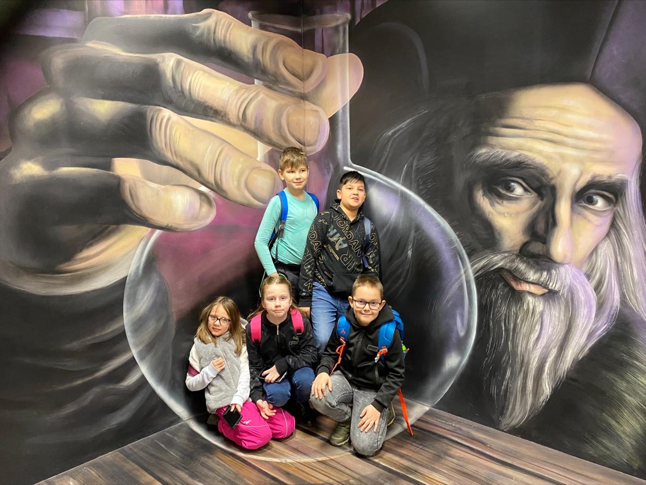 Minulý měsíc vyjel eko-turistický kroužek do Oblastního muzea v Děčíně, kde na děti čekal Hagrid. Společně s Hagridem jsme namíchali mnoholičný lektvar, přesazovali jsme kořen mandragory a zjistili jsme do jaké koleje jsme zařazeni. Vánoce v Bradavicích byly prostě super. Kouzlem a iluzí jsme se nechali inspirovat i v měsíci lednu. Sobotní den jsme si užili v Muzeu fantastických iluzí v Praze. Nezapomněli jsme se také podívat na Staroměstské náměstí s orlojem.