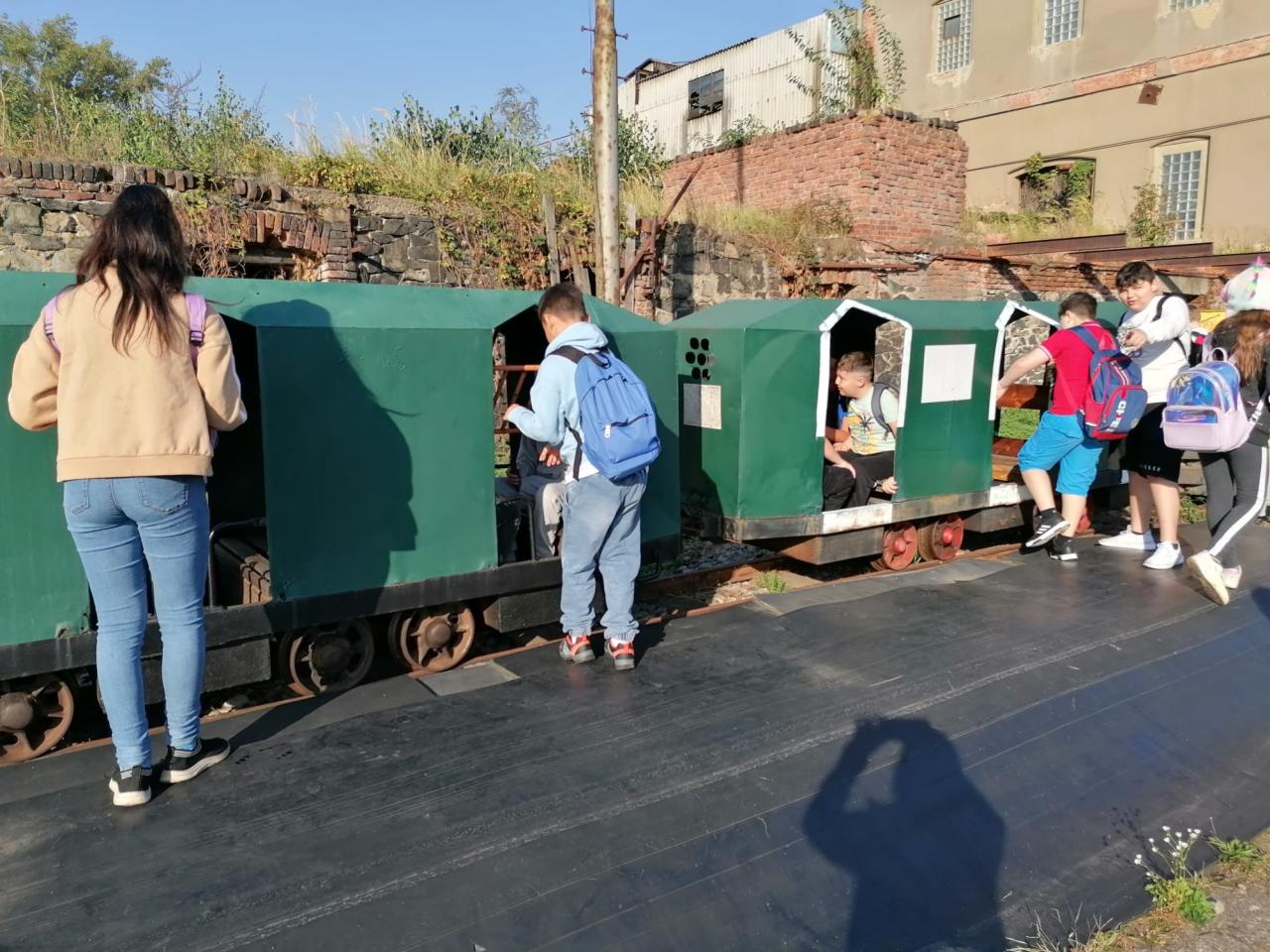 Ve venkovní expozici děti obdivovaly, prozkoumaly a prolezly těžkou důlní techniku, lokomotivy a vozíky.