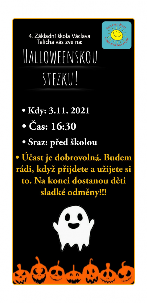 Pozvánka na stezku odvahy pro žáky prvního stupně, kterou si připravili žáci 9. tříd.