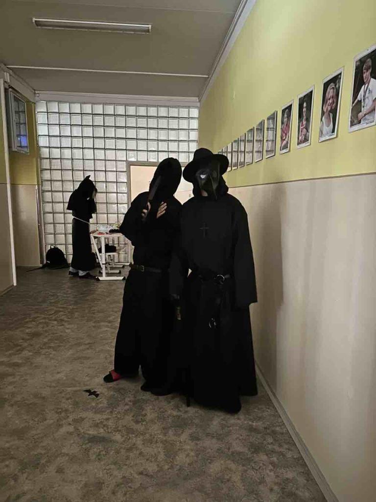 Páteční podvečer patřil Halloweenské stezce odvahy. Žáci devátých ročníků si pro své mladší spolužáky připravili cestu plnou strašidel. Po škole se pohybovaly děsuplné jeptišky, kat, morový lékař i kostlivci. Atmosféra byla napínavá, ale zároveň plná smíchu, nadšení i výkřiků. Účastníci stezky prošli celkem osm tematických stanovišť, kde je čekaly různé úkoly, hádanky, nebo zkoušky odvahy. Na konci své cesty se podepsali na listinu, který dokazuje, že se nezalekli žádného strašidla a stezku úspěšně zvládli. Nechyběly ani efekty jako mlha, svíčky, tajemné zvuky a pečlivě připravené dekorace, které proměnily známé školní chodby v temné zákoutí plné překvapení. Deváťáci se ujali svých rolí s velkým nasazením a jejich herecké výkony byly opravdu přesvědčivé. Na konci čekala na všechny účastníky sladká odměna. Jaká bude stezka příští rok? Rozhodně se máte na co těšit.