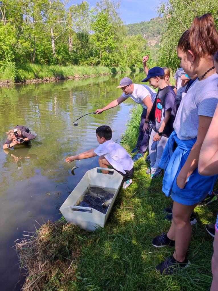 Dne 19. 5. 2022 se naše třída 4. C zúčastnila akce - jarní výsadba ryb do Bíliny. Během dopoledne měly děti možnost vidět zblízka spoustu druhů ryb (kapr, cejn, štika, plotice) vlastnoručně je mohly hodit do vody, prošly si několik stanovišť, kde odpovídaly na otázky, zasoutěžily si v přenášení vody, chytání ryb, motání lodiček. Nakonec na ně čekalo překvapení v podobě opékání buřtíků. Závěrečná fotka a malý dárek od organizátorů ukončila tuto úžasnou akci, která se všem moc líbila.
