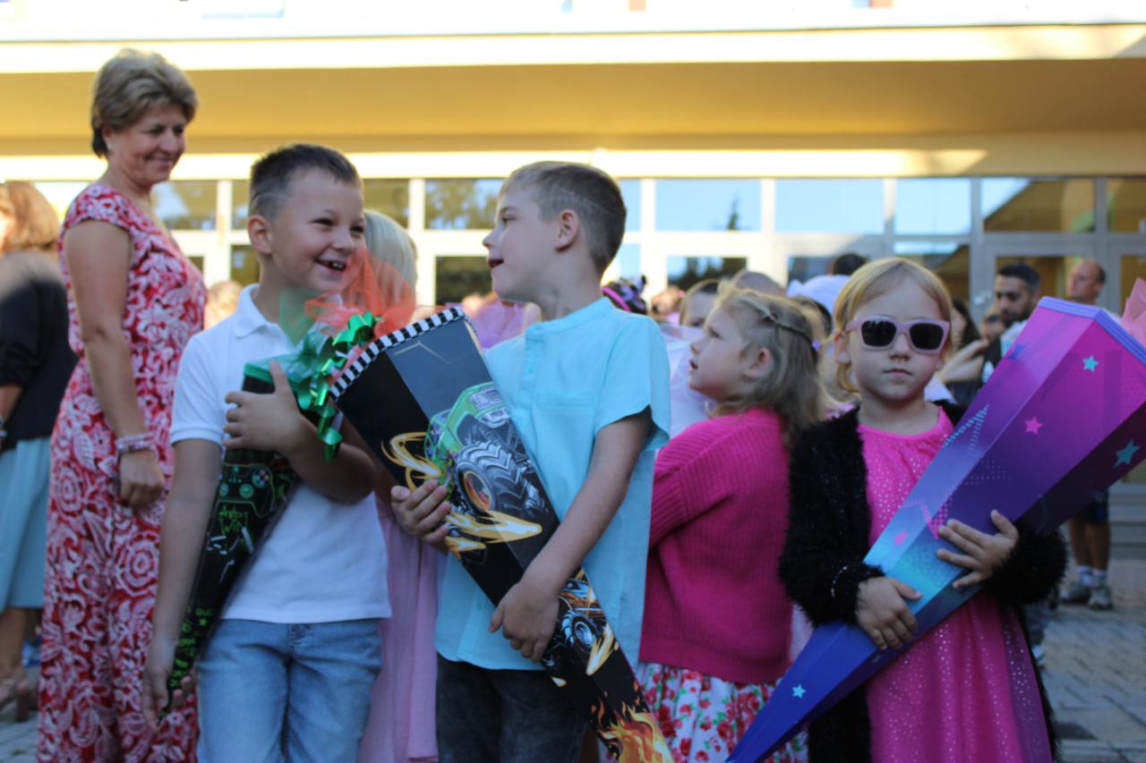 Na nádvoří naší školy jsme slavnostně přivítali šedesát prvňáčků. Někteří vykročili do svého prvního školního roku s úsměvem od ucha k uchu, jiným ukápla slzička. „Bude se mi stýskat po mamince, ale zvládnu to,“ řekla statečně šestiletá Natálka. „Bude sranda. Už něco umím, třeba abecedu, počítat do sta nebo říct básničku,“ pochlubil se s nadšením její spolužák Jakub z 1.A.