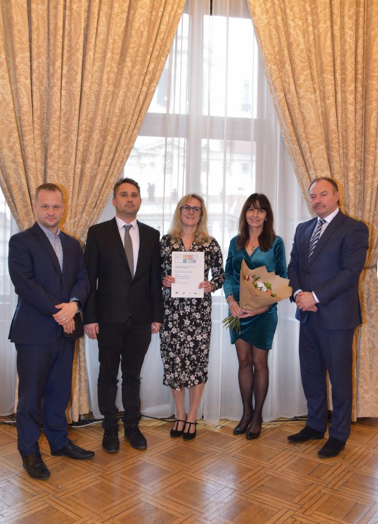 Evropskou jazykovou cenu Label převzaly paní učitelky Daniela Paurová a Lenka Nováková za projekt Blue-bot in action z rukou zástupců MŠMT a Domu zahraniční spolupráce. Předávání se účastnil také ředitel školy Aleš Jaroš.