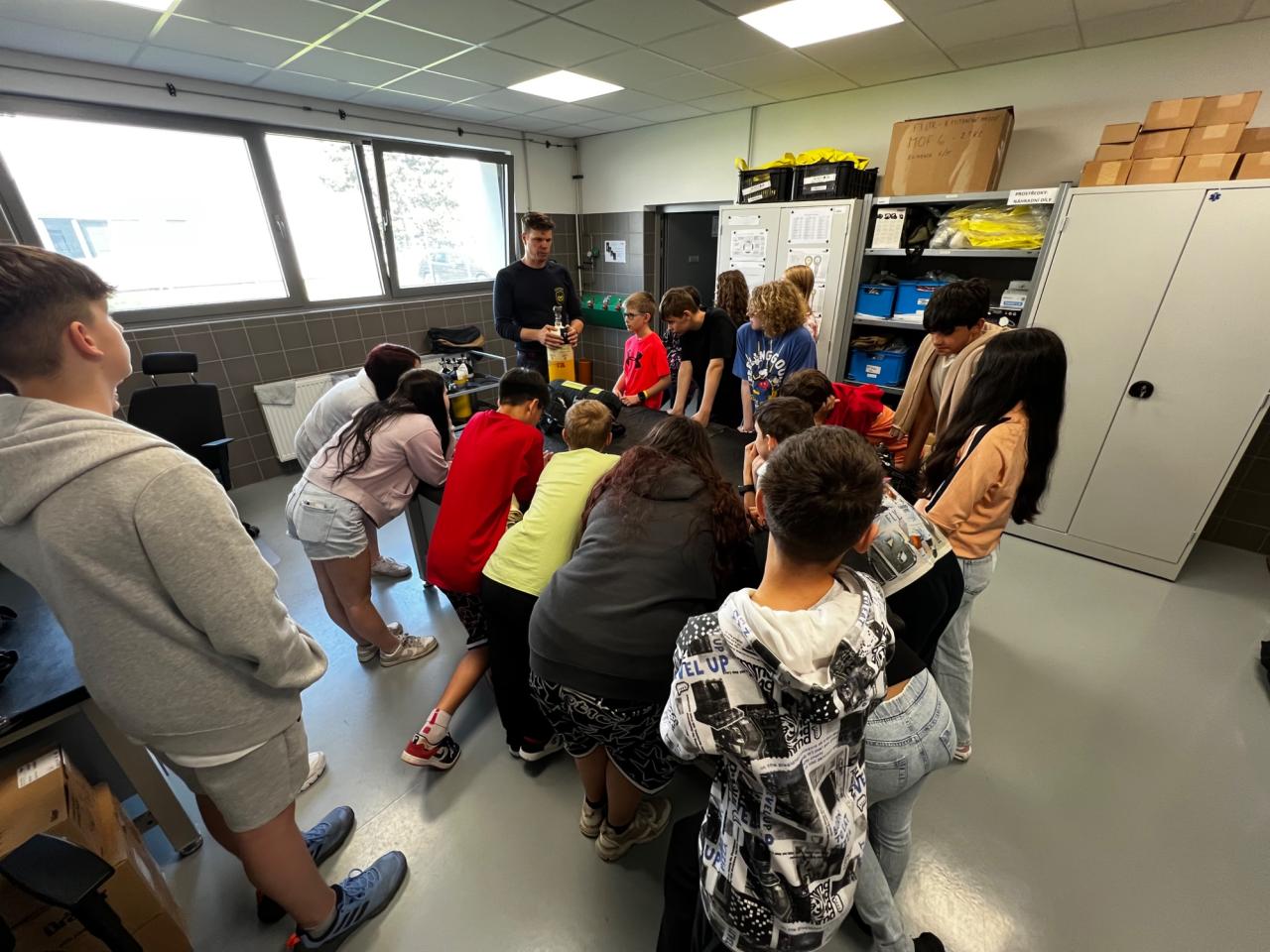 Dnes jsme se se třídou zúčastnili exkurze na hasičské stanici v Mostě, konkrétně ve Velebudicích. Přivítal nás velitel čety, který nás provedl celým areálem, seznámil nás s technikou, výstrojí i náročnou prací hasičů. Měli jsme možnost si některé věci i sami vyzkoušet – například manipulaci s hasičskou výzbrojí. Na závěr si každý mohl vyzkoušet, jak náročné je udržet a ovládat proudící vodu z požární hadice.