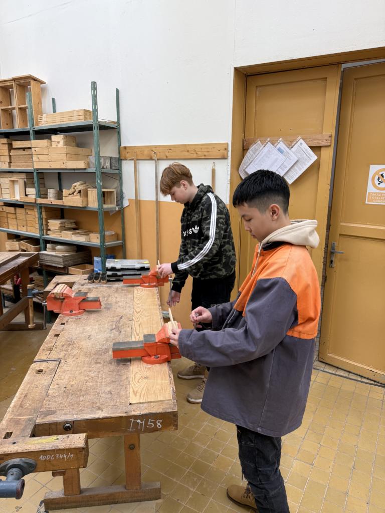 Žáci 7. ročníků naší školy měli opět příležitost navštívit dílny na střední průmyslové škole v Mostě. Tentokrát zamířili do truhlárny, kde si pod odborným dozorem pana učitele Tourka mohli vyrobit vlastní výrobek ze dřeva.