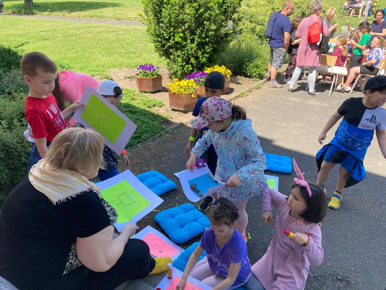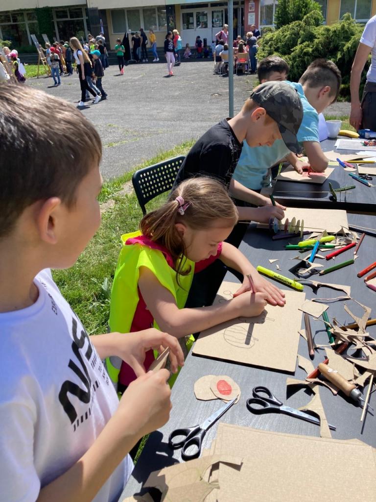 Ve středu 25. 5. 2022 se zúčastnily děti ze školní družiny tvořivého odpoledne pořádaného ZUŠ Moskevská v parku u knihovny. Malí umělci aktivně využili různorodé výtvarné dílny. Seznámili se s výtvarnou technikou land art, vytvořili si své ovocné špízy, vyzkoušeli vyšívání a krajinou kresbu. Ocenili také prezentaci literárně dramatického oboru. Ze široké nabídky si vybral každý a výrobky potěšily nejen děti.