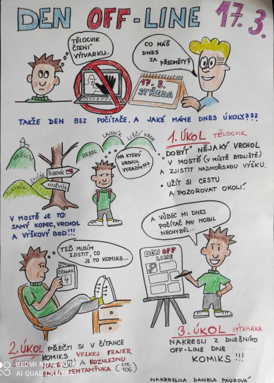 Většina žáků splnila úkol opravdu na jedničku. Někteří navštívili místa v blízkém okolí domova, jiní se vydali pěšky či na kole ke kostelu, na hrad Hněvín, na vrch Zlatník apod. Z fotografií, které pořídili, bylo vidět, že si to opravdu užili. Zjistili také spoustu zajímavých informací. Ti, kteří byli v karanténě, fotografovali alespoň z okna a malovali obrázky.