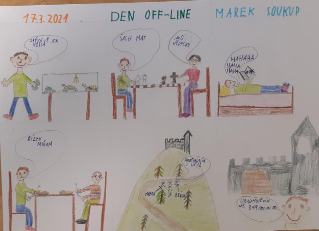 Projektový den se nesl ve znamení výzvy: SČÍTÁME KILOMETRY. Úkolem bylo zaznamenat počet ušlých, nebo ujetých kilometrů v rámci jednoho dne, který nazýváme detoxikační, odpočinkový, prostě den bez elektroniky. Podmínkou byl pohon vlastními silami a zdokumentování výsledku. Průběžné sčítání dává vidinu slibného výsledku. K překonávání minulých osobních limitů napomohlo velmi krásné počasí. Akce se vydařila.
