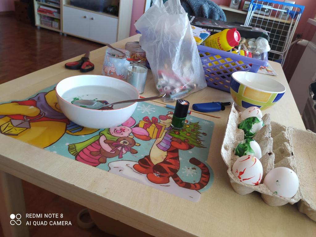 5.B (paní učitelky Strouhalové) měla v rámci Velikonočního "detoxu" od sezení u PC využít pěkného počasí a jít si zasportovat (TV), pomoci doma s velikonoční výzdobou, pečením... (PČ) a libovolným způsobem vytvořit velikonoční blahopřání (VV).