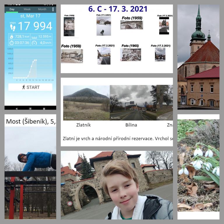 Žáci 6.C (paní učitelky Novákové) plnili v průběhu projektového vyučování pohybové, ale i vzdělávací aktivity. Cíl cesty si mohli vybrat sami. Museli zapsat počet kroků, cestou vyfotit nějakou jarní květinu a čtyři zajímavá místa. Alespoň o jednom místě pak zjistit více informací a napsat anglicky 3 věty o tom, co viděli.