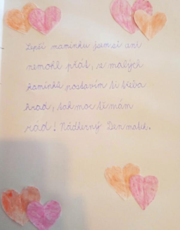 Nejhezčí dárek je ten od srdce věnovaný. V rámci projektového dne 28.4. se naši žáci 5. - 7.tříd snažili přáním, dárečkem udělat své mamince radost.. a musím uznat, že se jim to opravdu povedlo.