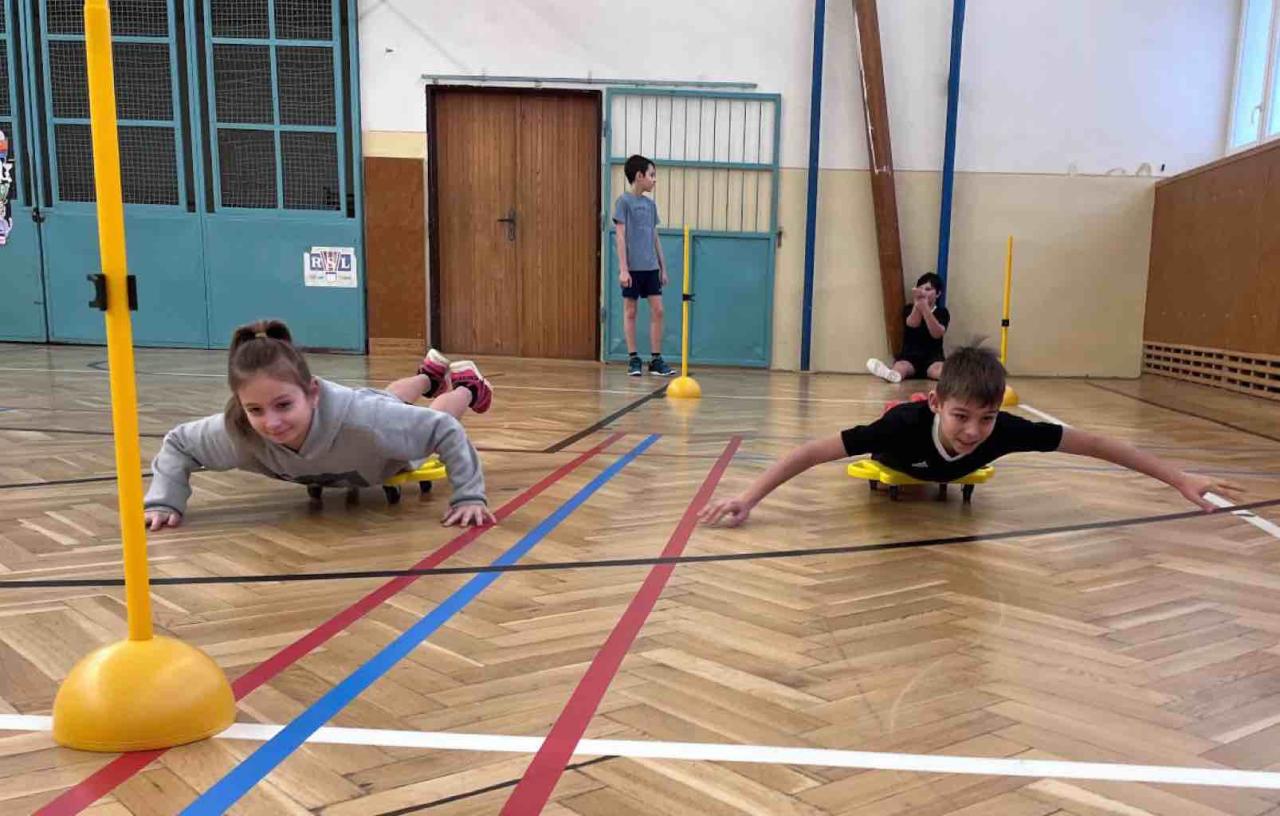 Sportovní nadšení jsme si naplno užili také v tělocvičně, kde si děti vyzkoušely olympijské disciplíny - skok na lyžích, biatlon, curling a dokonce i skeleton. Nechybělo fandění, týmová spolupráce ani radost z pohybu. Možná tento projekt a první vyzkoušení některých disciplín v někom zažehlo jiskru opravdového sportovního nadšení, třeba budeme za pár let sledovat skutečné olympijské hry a s hrdostí fandit některému z našich současných čtvrťáků, který si splní svůj sportovní sen.