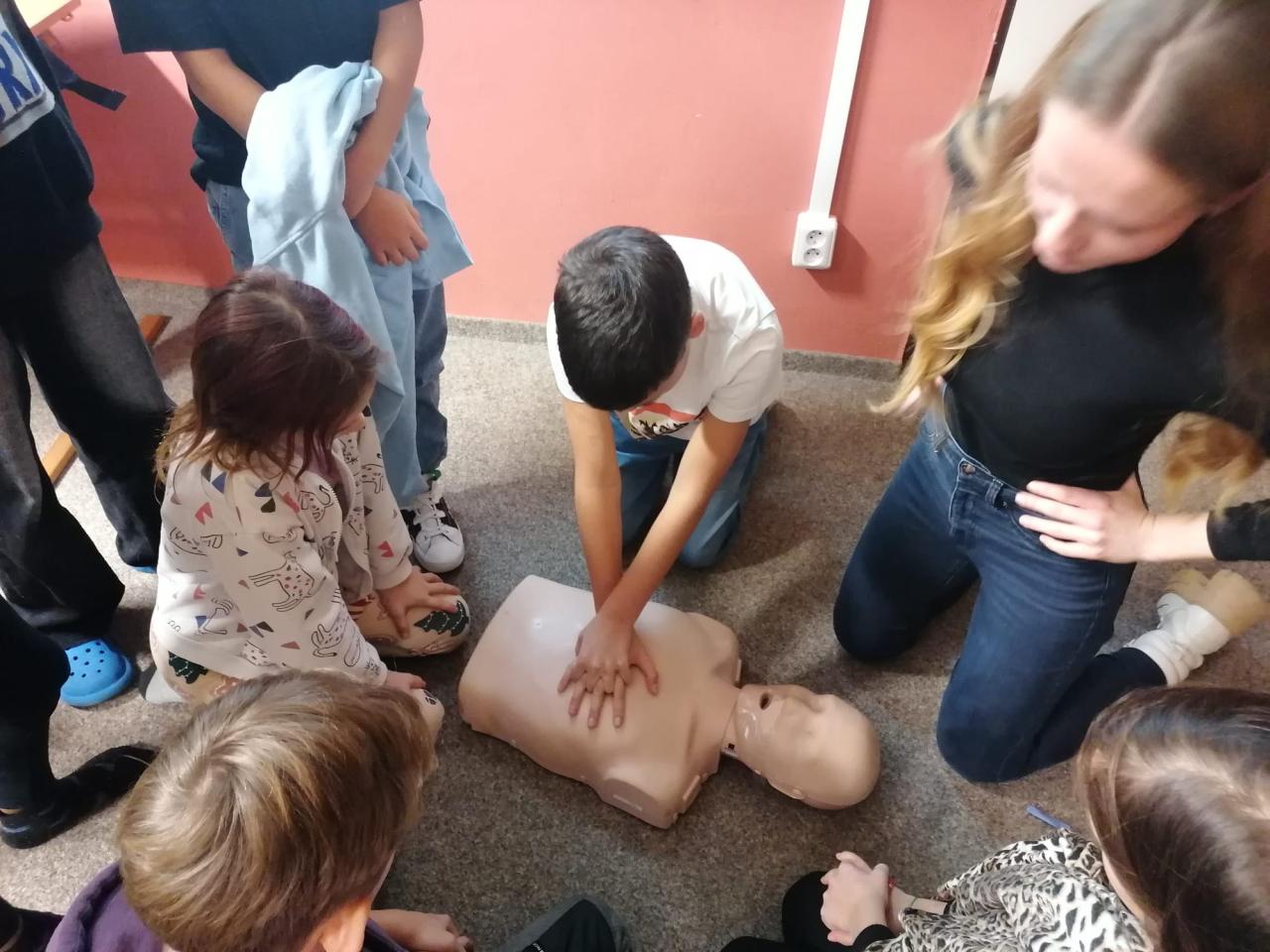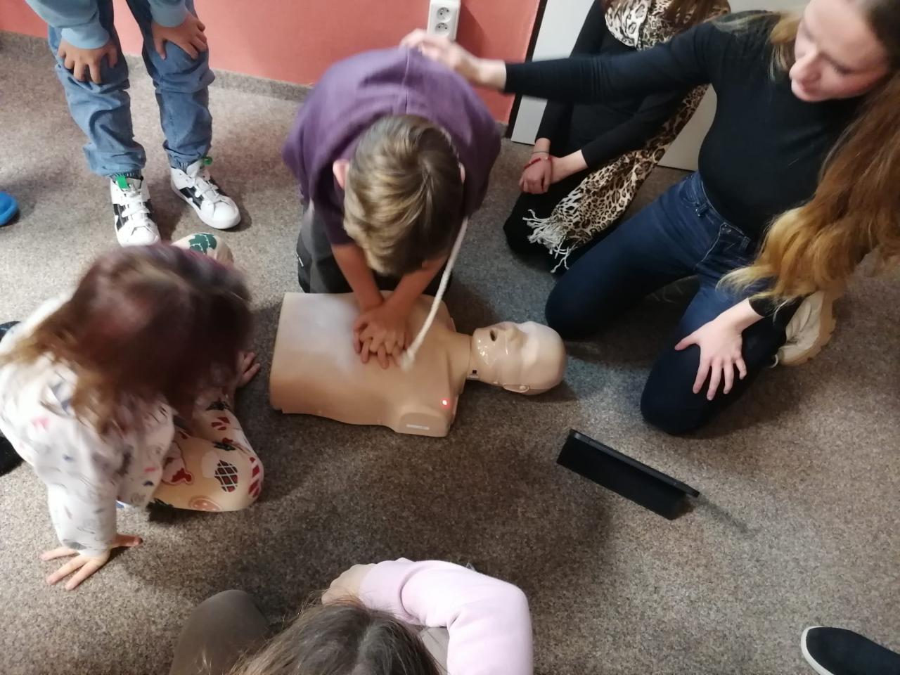 Velkým přínosem bylo provádění srdeční masáže, kterou si každý žák vyzkoušel na figuríně.