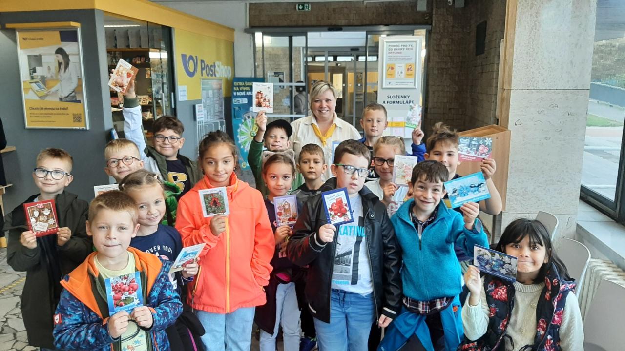 Dne 9.10. si paní učitelka připravila pro žáky 2.C projektový den na téma pošta. Žáci ráno dostali dopis a pomocí instrukcí složili téma celého vyučování: Dnes je světový den pošty. Dále si zábavnou formou hráli v hodině s písmeny, abecedou a luštily další hádanky. Následně jsme se všichni vydali na exkurzi na poštu, kde nás paní pošťačka zasvětila do tajů fungování pošty. Děti bedlivě poslouchaly a dozvěděli se spoustu nových informací i legrační historky se zákazníky pošty. Na závěr za správné odpovědi dostaly odměny, ze kterých měly velikou radost. Ještě jednou moc děkujeme paní pošťačce za úžasnou prohlídku.