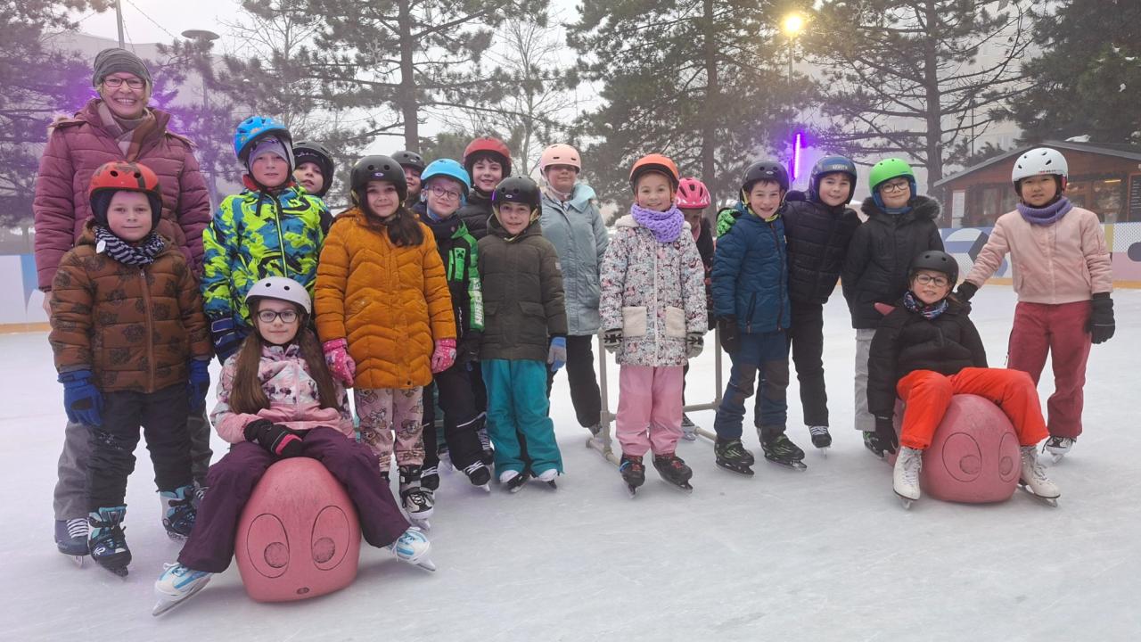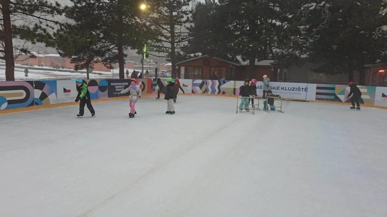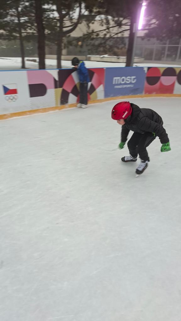 Žáci třídy 3. C se ve čtvrtek znovu vydali k magistrátu na ledovou plochu, aby si užili další hodinu bruslení. Pro některé to byla příležitost zdokonalit své dovednosti na ledě, jiní se učili stát na bruslích teprve nedávno. Všichni se ale snažili a navzájem se podporovali.