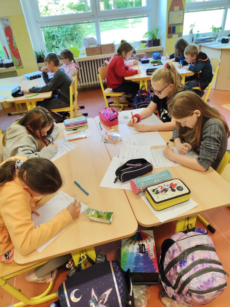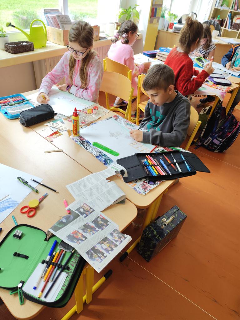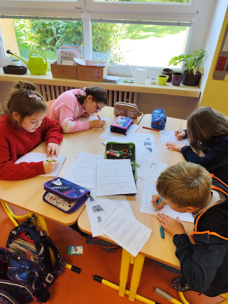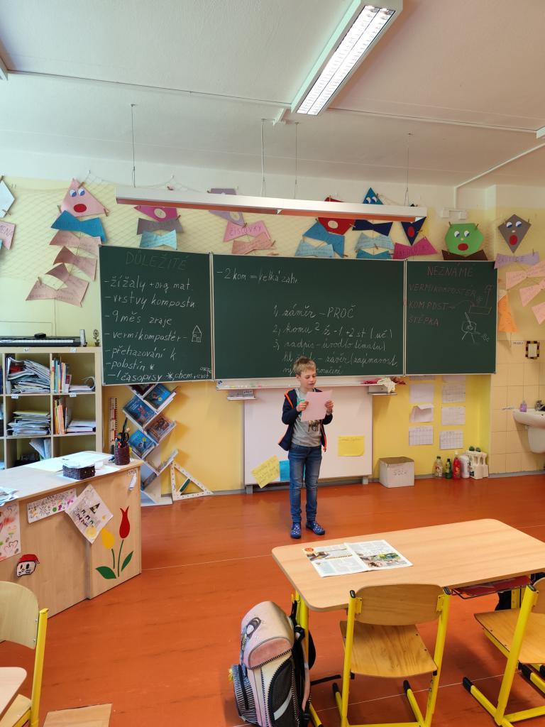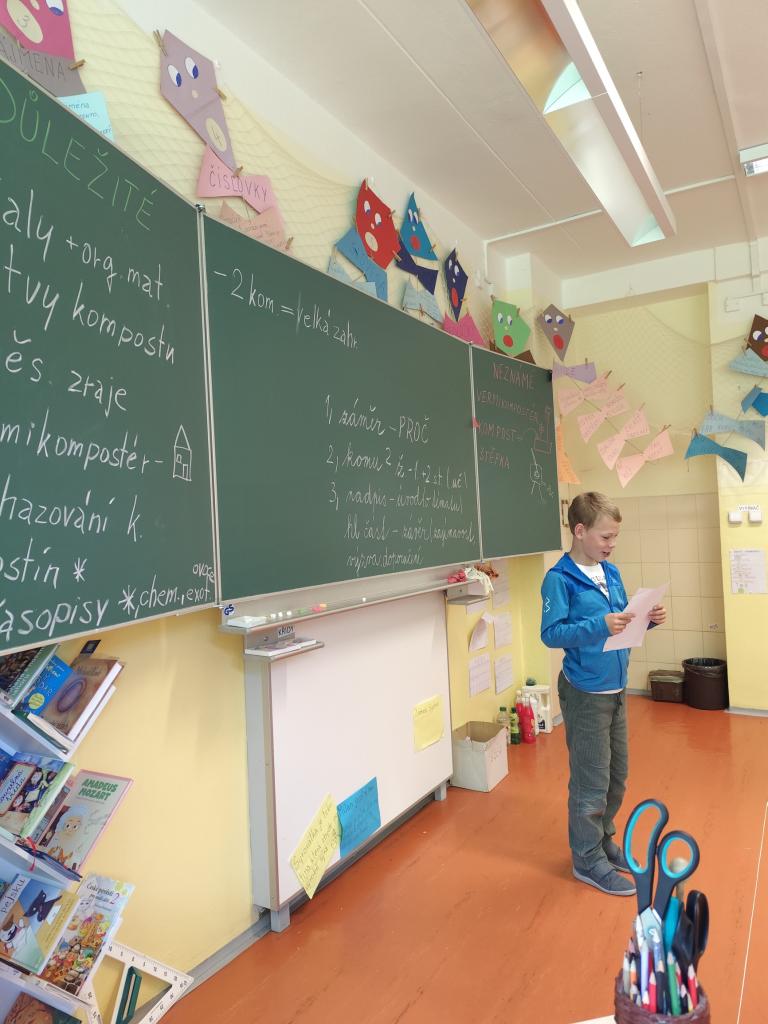 Malí zahradníci ze 3. A se dnes učili třídit odpad, který lze dávat do kompostéru. Četli odborné texty, vyhledávali důležité a zajímavé informace, vysvětlovali si neznámé pojmy. Pracovali metodami kritického myšlení: Černá ovce, Rybí kost, Propustka. V pisatelském úkolu psali dopis žížale a jeden žák se pokusil napsat článek do školního časopisu. Kompostovatelný odpad, který si přinesli z domova, uložili do speciálních sáčků a odnesli do školního kompostéru. V závěru projektového dne tvořili žáci z přírodních materiálů koláž zahrady s kompostérem. Práce se jim dařila. Děkuji žákům i rodičům za spolupráci.