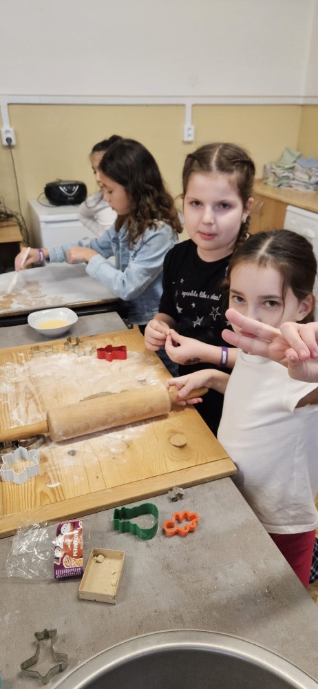Tento týden se naše školní kuchyňka proměnila v místo plné radosti, spolupráce a vůně vánočního cukroví. Společně jsme se pustili do pečení – někdo vykrajoval tvary z těsta, jiný zdobil perníčky, další mazal marmeládu nebo přidával cukr. Každý si našel svou roli a dohromady jsme vytvořili nejen chutné dobroty, ale i krásnou atmosféru.