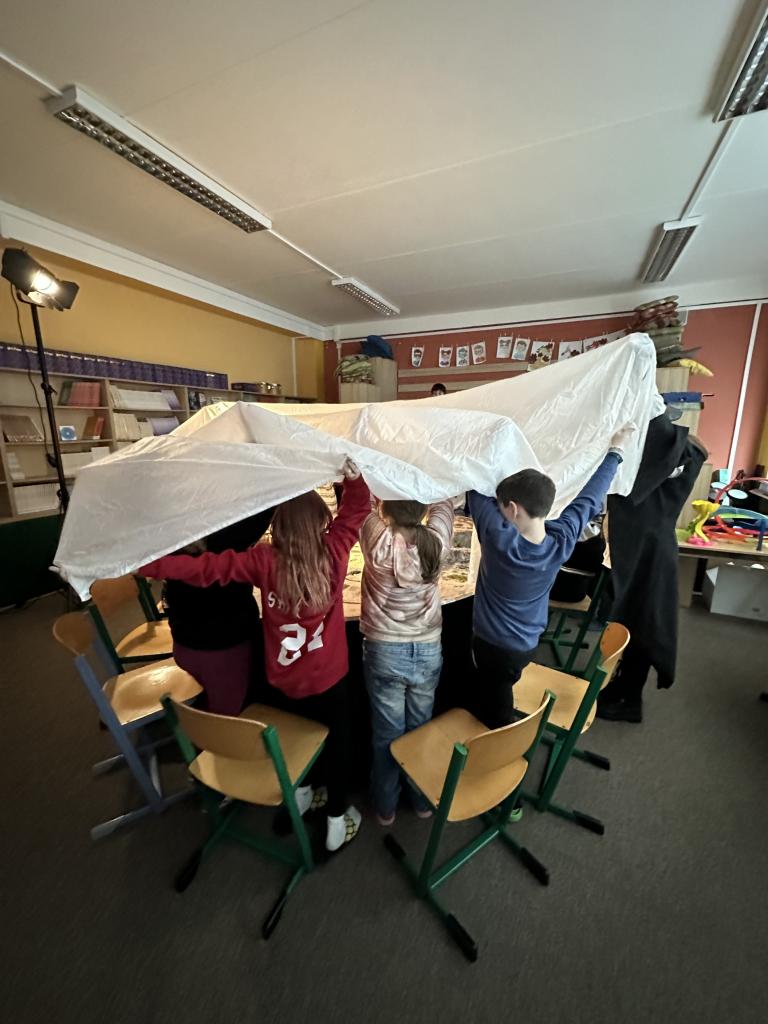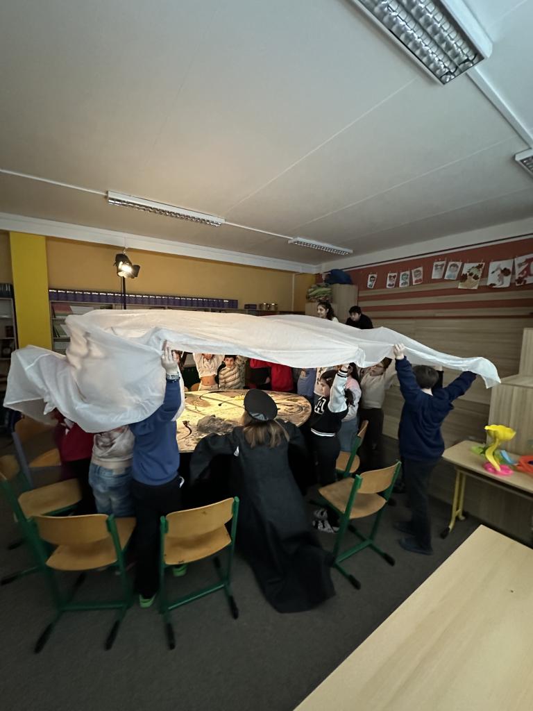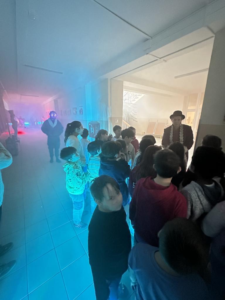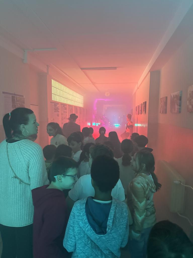 Žáci školního klubu se zúčastnili originálního divadelního představení, které bylo výjimečné nejen svým příběhem, ale i zpracováním. Kulisy byly rozmístěny na různých místech po celé škole, a tak se děti během představení přesouvaly z prostoru do prostoru a stávaly se součástí děje.