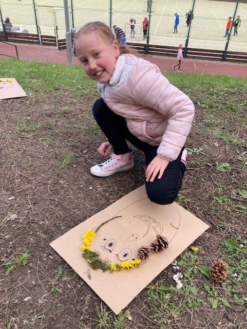 Zlepšení počasí nám dovolilo vytvořit galerii na školním hřišti. Děti díky své fantazii vytvořily různorodé formy účesů pro své kreslené obličeje.