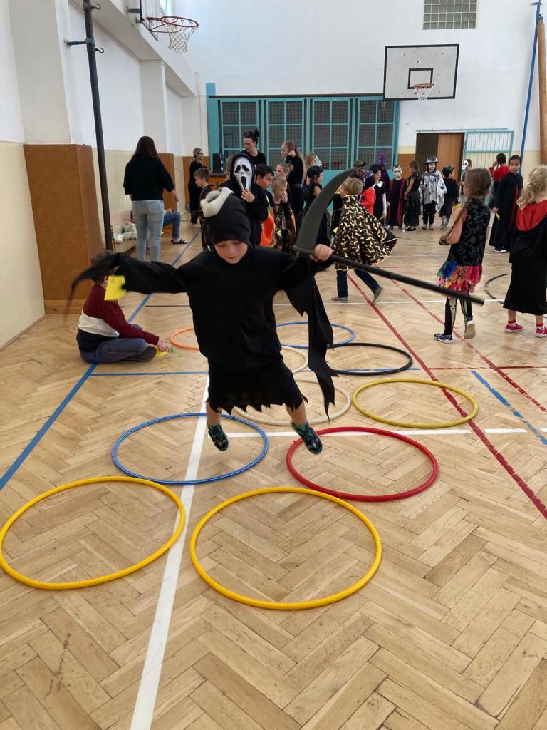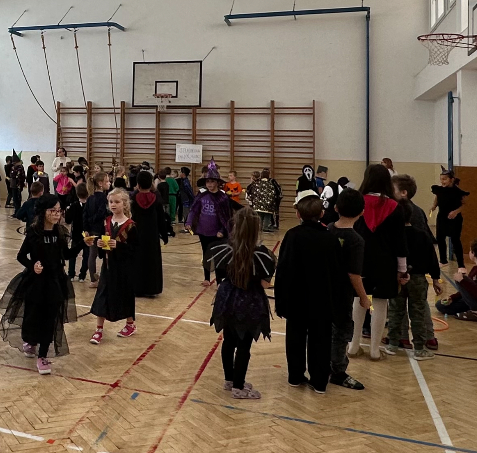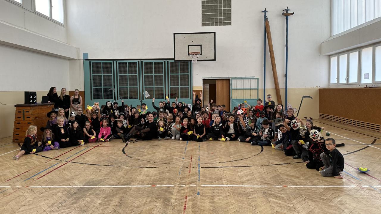 V pátek 25. října se tělocvična naší školy proměnila v místo plné duchů, strašidel, oblud a dalších příšer. Sešla se zde všechna oddělení školních družin na velkolepý halloweenský rej, který přinesl spoustu zábavy a radosti.