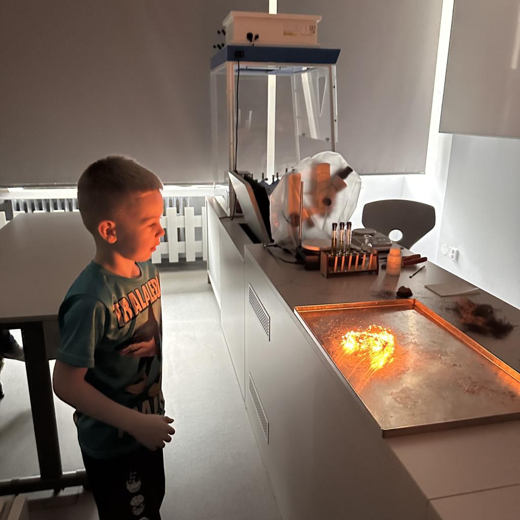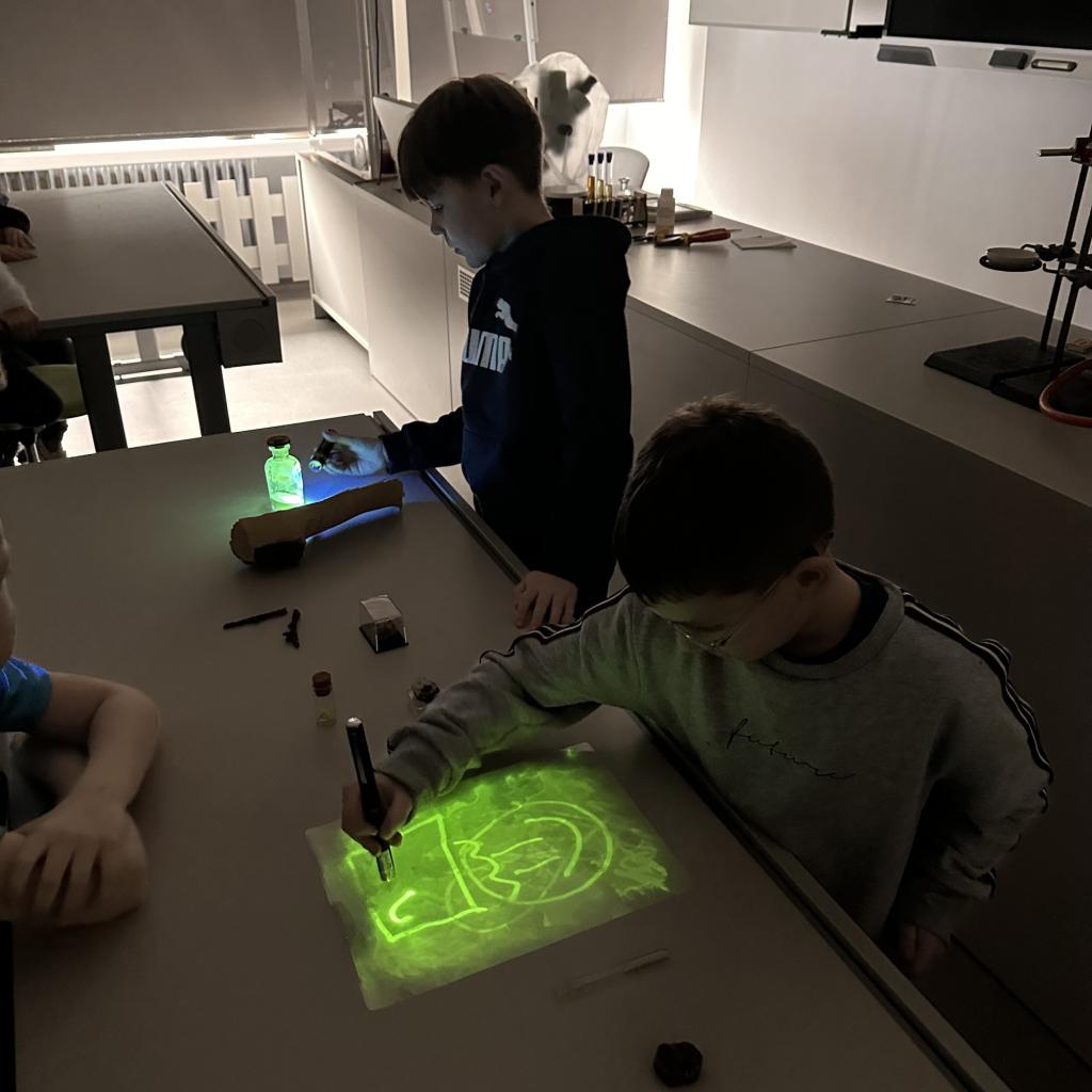 Děti navštívily učebnu chemie, kde pro ně byla připravena názorná ukázka zajímavých chemických pokusů.